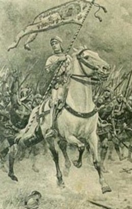 5. De los fieros guerreros Juana ganó las almas: El resplandor divino del Enviado de los cielos Su mirada pura, su palabra en llamas Hicieron que las frentes atrevidas se inclinaran. |