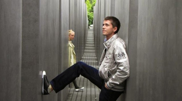 It is not quite a selfie but it is rather close. Max Krah above posing inside the Holocaust Memorial in Berlin, Germany. So what’s the big deal? Well, first off in his love to be associated with all things Zionist, Max has imitated the sodomites in his native Germany. What are you guys at Call Me Jorge… crazy? Yes, we know Max is happily married and has several children but look at the photo above and then check out these below.