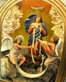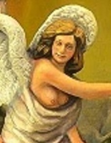 Aquí la cosa nos parece ya muy sugerente. Un ángel con pechos femeninos. El BAFOMET también es un ángel y también tiene pechos femeninos. Pero el Bafomet es mucho más sincero; él no se pretende un servidor de la Virgen sino que muy por el contrario, se presenta como lo que es, el ENEMIGO de la Madre de Dios, de la Iglesia de Dios, y de Dios mismo.