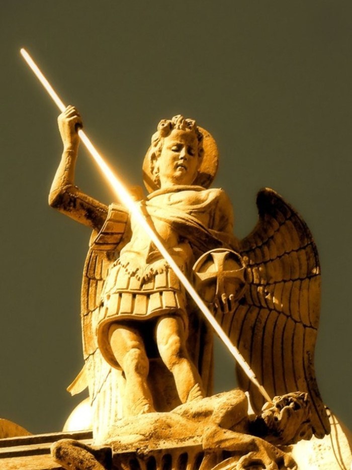 Nueve Padrenuestro y nueve Avemaría, en reverencia de los nueve Coros de los Ángeles y del Caudillo de todos, San Miguel a quien dirá la oración siguiente: