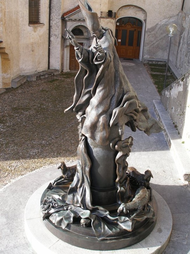 La estatua, realizada por el escultor masón Floriano Bodini, fue encargada por el masón Pasquale Macchi. Está cargada de signos masónicos. Fue inaugurada el 24 de mayo de 1986 por el Ministro de Relaciones Exteriores de Italia, el masón Giulio Andreotti, junto al Secretario de Estado vaticano, el masón Agostino Casaroli.