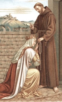 Patrona de la Tercera Orden Franciscana; viudas; panaderos; mendigos; novias; trabajadores y sociedades de caridad; condesas; exiliados; personas falsamente acusadas; hospitales y sanatorios; servicios de enfermería; personas ridiculizadas por su piedad; terciarios. Protectora contra la mortalidad infantil; dolores de muela; problemas con la familia política.