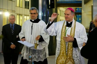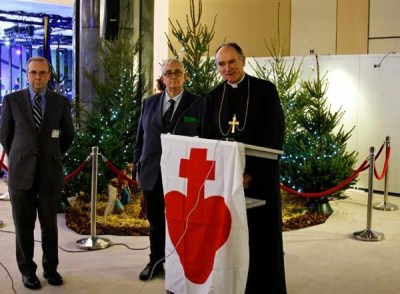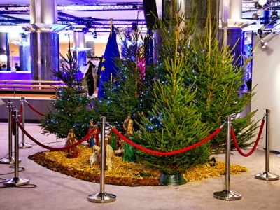 AYER MARTES 9 DE DICIEMBRE EL OBISPO BERNARD FELLAY SUPERIOR GRAL. DE LA SOCIEDAD SAN PÍO X, BENDICE EL PESEBRE LEVANTADO EN EL HALL DEL PARLAMENTO EUROPEO UBICADO EN LA CIUDAD DE BRUSELAS -BÉLGICA-