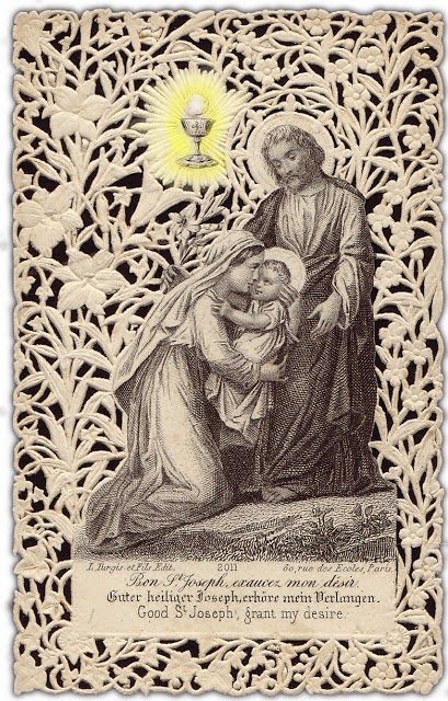 O BEATISSIME IOSEPH, quanta tibi a Deo gratia concessa est, quod unigenitum eius Filium in carne (quem tot reges videre frustra exoptarunt) non tantum videris, sed et brachiis paterno affectu amplexus fueris! Utinam ego hoc tuo exemplo inflammatus, et patrocinio adiutus, Dominum ac Redemptorem meum Christum Iesum simili amoris ac reverentiae affectu complectar in sanctissimo Altaris Sacramento, quo merear eundem posthac aeternum complecti in caelis. Amen. Pater, Ave et Gloriapatri