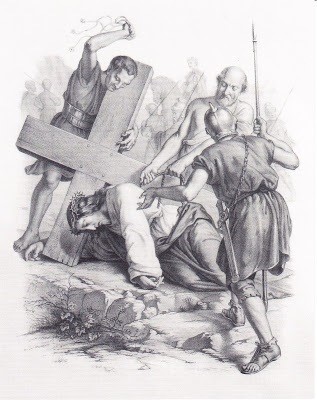 Mira, alma, a tu amado Jesús en lo más penoso del camino. La subida del monte Calvario era áspera y pedregosa. Sube y se fatiga; le gritan, impelen y apuran: pero la debilidad crece; el cuerpo se inclina: pisa la túnica y cae en la Cruz, se lastima la boca, se baña en sangre. ¡Ay, dolor! Queriéndose levantar vuelve a caer de nuevo y se le renuevan todas las llagas ¡Oh! ¡Cuánto pesan nuestras recaídas!