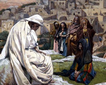 “Tan pronto como lo oyó, María se levantó y fue a ver a Jesús. Jesús no había entrado todavía en el pueblo; estaba en el lugar donde Marta se había encontrado con él. Al ver que María se levantaba y salía rápidamente, los judíos que estaban con ella en la casa, consolándola, la siguieron pensando que iba al sepulcro a llorar. Cuando María llegó a donde estaba Jesús, se puso de rodillas a sus Pies, diciendo: —Señor, si hubieras estado aquí, mi hermano no habría muerto. Jesús, al ver llorar a María y a los judíos que habían llegado con ella, se conmovió profundamente y se estremeció”.