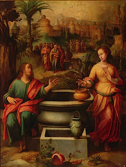 Al agua manantial llamaban los hebreos «agua viva», al agua de vertiente que brota por sí sola y corre, y no se estanca. A esta agua, tan nombrada en el Antiguo Testamento, se compara Cristo; y el Evangelista explica que alude al Espíritu Santo y a su acción en el alma. En suma, el «agua viva» o manantial, es la Gracia. «El que beba de ella, no tendrá más sed»; simplemente porque seguirá bebiendo de ella y no beberá más en charcos; pues beber, esto o estotro, necesario es. Mas, ¿no dice la Escritura que el que beba de Dios tendrá más sed? Sí, tendrá más sed de Dios, pero menos sed de los charcos. «Yo soy el pan de vida: el que se allegue a mí no hambreará y el que crea en mí no tendrá sed nunca». (Jo.VI,35). Esta comparanza está iniciada en el coloquio con la Samaritana, que fue al lado de una fuente, coloquio que comenzó acerca del agua que Cristo le pidió a ella. Traduciremos esta perícopa -que es larga, pero vale la pena-, directamente del griego, aunque sin ponerla en estilo oral por amor de la brevedad: