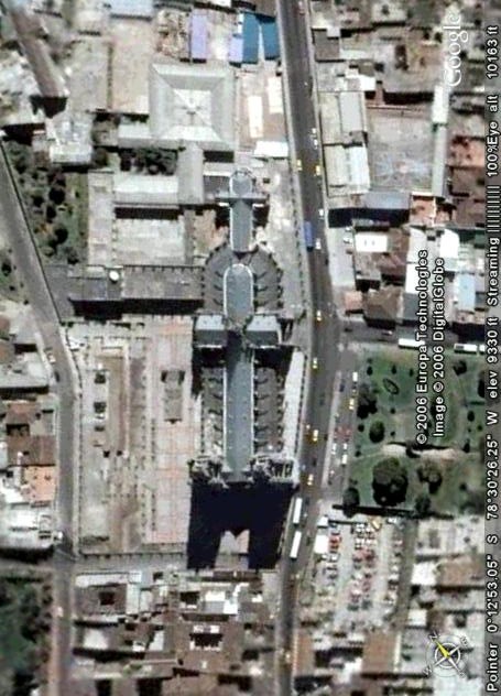 Vista aérea donde se advierten las dos plantas en cruz latina: