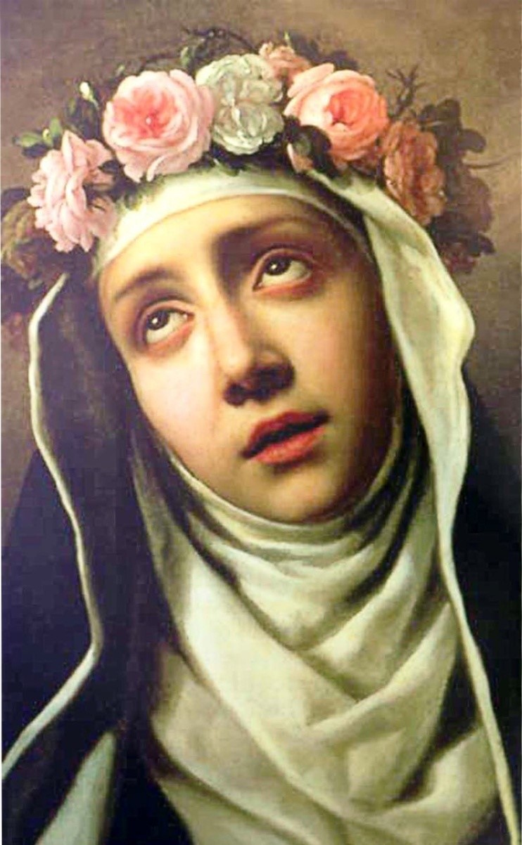 Oh esclarecida Virgen, Rosa celestial, que con el buen olor de vuestras virtudes habéis llenado de fragancia a toda la Iglesia de Dios y merecido en la gloria una corona inmarcesible; a vuestra protección acudimos para que nos alcances de vuestro celestial Esposo un corazón desprendido de las vanidades del mundo y lleno de amor divino.