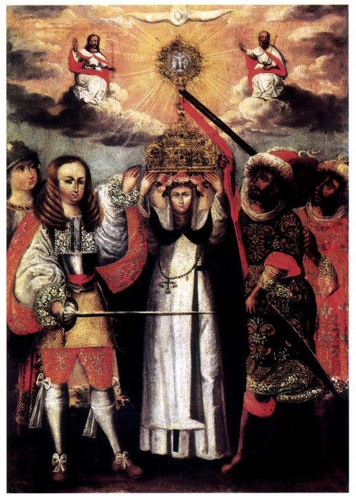Cuando los calvinistas holandeses se aproximaron a las costas del Callao en julio de 1615 cundió la alarma en Lima y mientras los frailes dominicos fueron a tomar las armas, el Santísimo Sacramento quedó sin protección alguna en la Iglesia de Santo Domingo. Entonces, Rosa, “convertida en leona” se remangó las mangas y cortó los hábitos “para con más ligereza poder subir al altar” proponiéndose “luchar y morir por el divino Sacramento”.