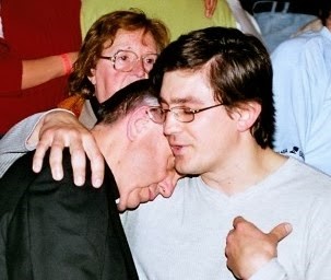 Bergoglio recibiendo un “tierno” abrazo.