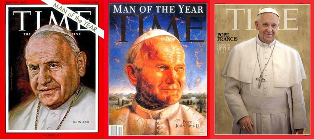 En la foto anterior puden verse detrás dos cuadros con la imagen, cada uno de ellos, de PÍO XII y JUAN XXIII… llamativa coincidencia, nada menos que el último Papa de quien podemos estar seguros de que lo fue hasta el mismo momento de su muerte, y del primero de los llamados “Papas Conciliares”, de quien de lo único que podemos estar seguros, además de que se murió, es de que convocó al Concilio Vaticano II, del cual llevamos cincuenta y tantos años viendo los frutos; de tales frutos tal árbol, y de tal árbol tal convocante.