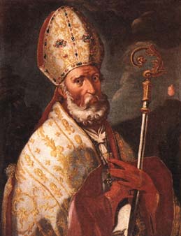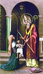 SAN BLAS (3 de Febrero). Tiene en la mano dos velas cruzadas. Se le invoca contra los males de garganta.