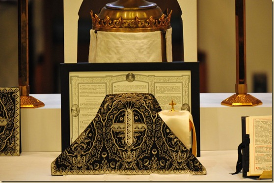Se preparaba una mesita que se cubría de un manto blanco. Sobre ella se colocaban dos velas en sus candelabros, un crucifijo, un vasito o pequeño recipiente con agua y un purificador con que el sacerdote purificarse sus dedos después de dar la Sagrada Comunión, algunas flores, bien naturales o artificiales.