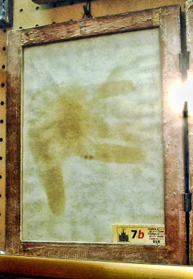 Reproducción fotográfica del altar de Nuestra Señora del Rosario, una capilla que existía antes del año 1900 en el lugar, donde aparece visible en la pared una forma con aspecto humano, después del incendio de 1897.