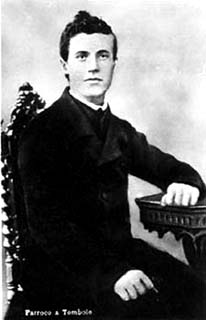 La escena nos recuerda las palabras de Pío X: si un cura se olvida de su santidad como persona consagrada y no presenta en su conducta exterior una gravedad superior a la de los hombres en el mundo «, entonces él hace que su ministerio y la religión en sí a sean despreciados.» por el contrario, en la imagen N°2, se puede observar un joven clérigo, en posición vertical, serio, vestido con dignidad, sentado erguido con porte noble, seguridad y dignidad en una silla señorial. La posición de las manos, con serenidad pero firmeza, expresar la energía que un buen sacerdote debe tener para dirigir las almas y los errores de combate. La cara, que también refleja un aire de serenidad, es una cara de un hombre que no teme a nada. Los ojos reflejan un hombre acostumbrado a hacer frente a la triste realidad de este valle de lágrimas y una confianza extrema en una fuerza muy superior a la suya, que es la fuerza de la gracia de Dios. Usted está mirando a Giuseppe Sarto, el mayor de los ocho hijos de un cartero del pueblo y su esposa costurera, como el párroco de Tombolo, Italia.