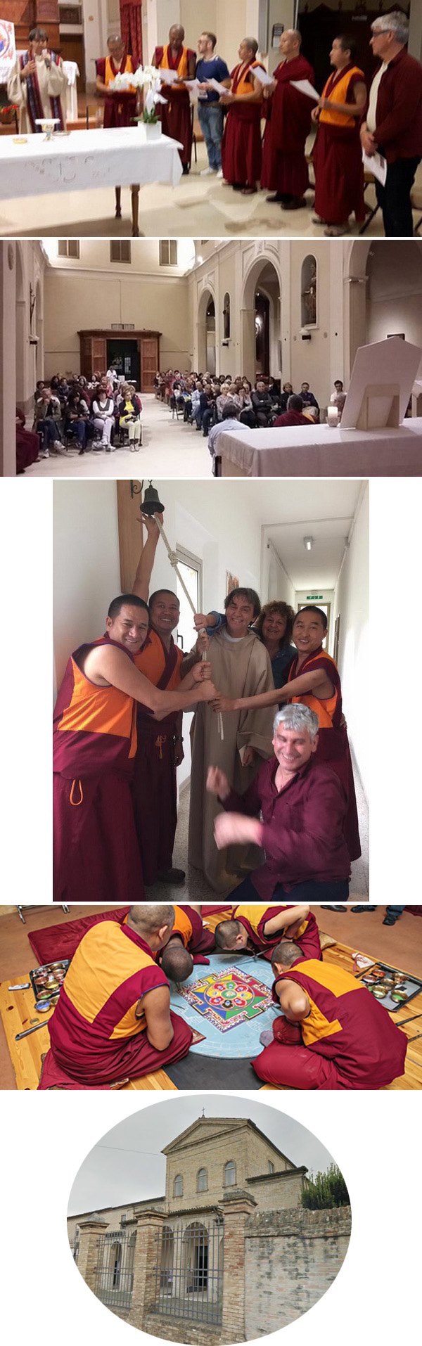 Los monjes tibetanos tomaron parte activa en una misa que se ofició el sábado 4 de junio, como se muestra en la primera fila de abajo . Más tarde, cuarta fila, utilizando pintura de arena, crearon un «mandala de la paz.» El mandala juega un papel clave en sus prácticas de meditación y se considera una herramienta de orientación espiritual.