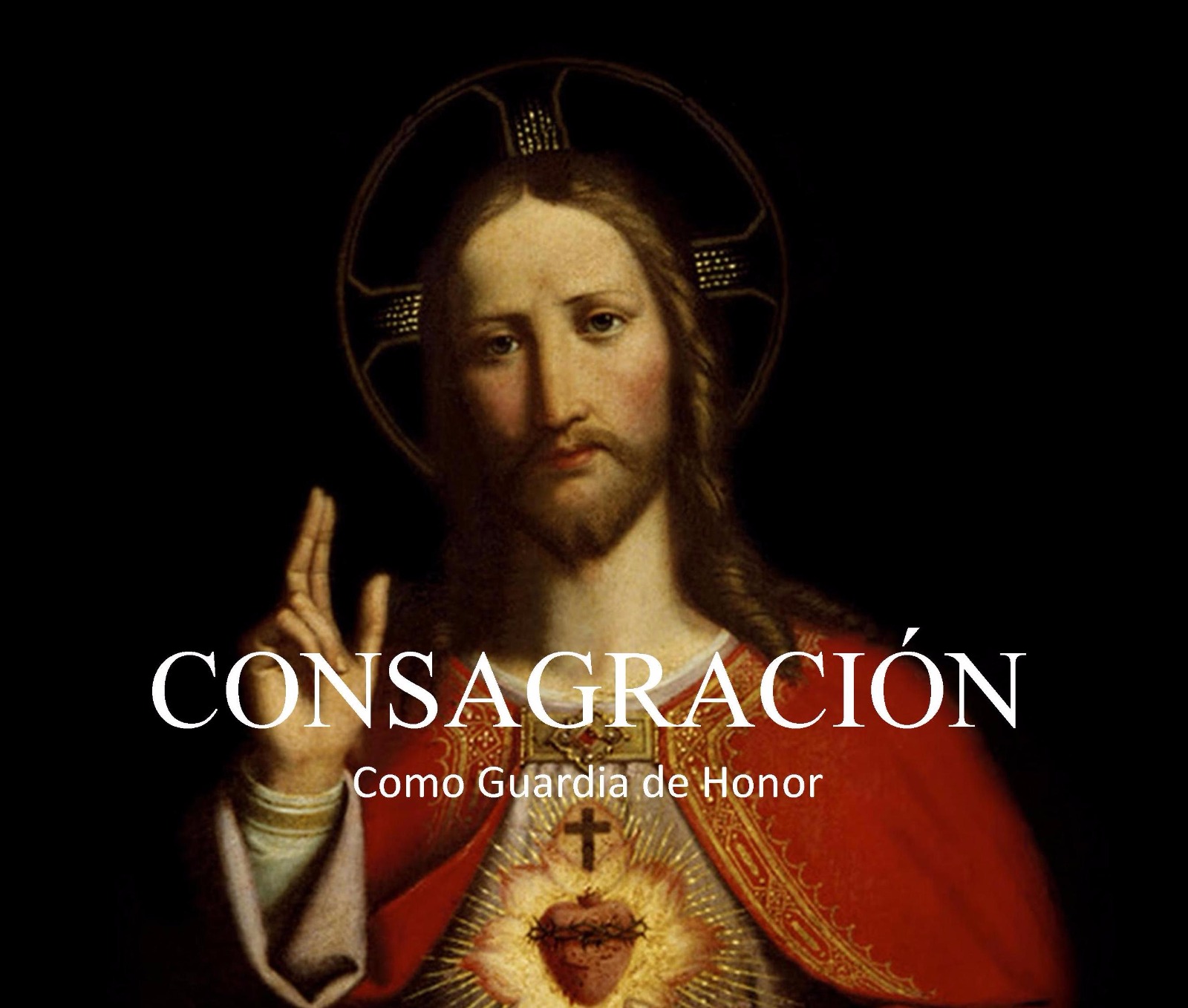 Dulcísimo, amantísimo y amabilísimo Jesús: yo, N. N. para dar la gloria que me sea posible a vuestro Corazón adorable; para probaros mi amor; y desagraviaros del olvido y la ingratitud de los hombres: me inscribo voluntariamente y de todo corazón en la Guardia de Honor de vuestro Corazón Sagrado. Os prometo con el auxilio de vuestra gracia, ser fiel (de tal a tal hora de mañana ó tarde) a mi consigna de consagración, amor y reparación.