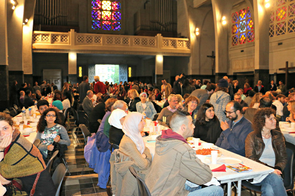 Los musulmanes rompen el ayuno en una iglesia católica en Bruselas