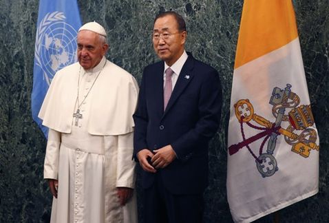 El papa Francisco acompañado del secretario General de la ONU, Ban Ki-moon