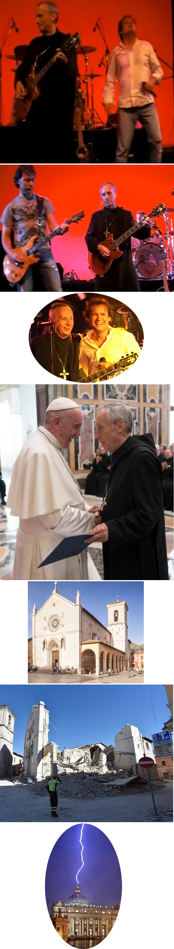 Cuando vemos el abad primado de los benedictinos tocando esta canción, entendemos por qué la basílica de San Benito – el lugar de nacimiento del santo en Norcia – fue destruida por los recientes terremotos que tuvieron lugar en Italia, quinta y sexta filas de fotos .