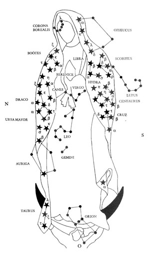 Además, los naturales de América conocían muy bien la posición de las estrellas, por lo que es lógico pensar que descubrieron las constelaciones en el manto de la Virgen.