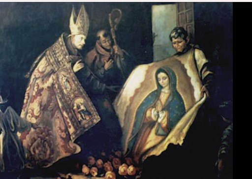 Juan Diego se presentó al Obispo, narró todo lo sucedido y, cuando desenvolvió su tilma y se esparcieron por el suelo todas las diferentes rosas de Castilla, se dibujó en ella la preciosa imagen de la siempre Virgen Santa María de Guadalupe, Madre de Dios, de la manera que está y se guarda hasta hoy en su templo del Tepeyac.