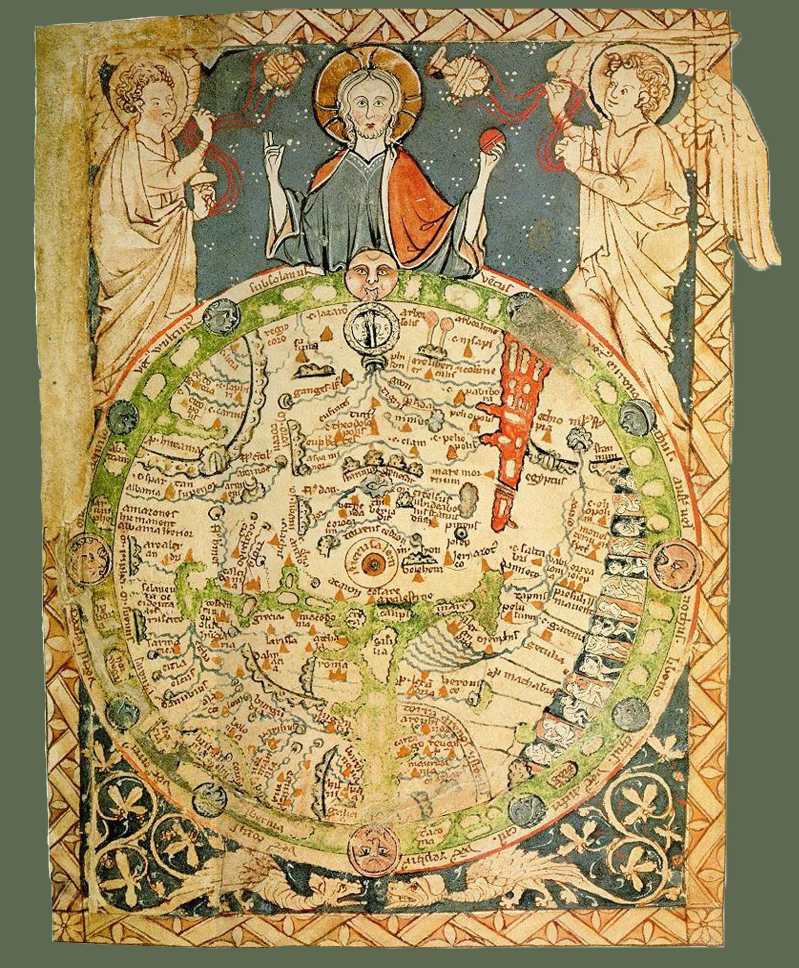 Otra consideración, que no brinda nada concluyente pero sí al menos, mueve a reflexión, es el hecho de que tanto en figuras literarias de la Biblia como en la iconografía cristiana, se representa al mundo como “orbe”, orbis terrarum. Los Salmos cantan las glorias de Dios “que llena el orbe de la tierra” y esta imagen se repite con cierta frecuencia tanto en este libro como en otros de las Sagradas Escrituras. Y respecto a la iconografía cristiana, baste poner un ejemplo, para nada único, pero sí emblemático: el Cristo, bendiciendo con su mano derecha y sosteniendo el “globo terráqueo” en la izquierda. Imagen muy corriente tanto en pinturas, como en mosaicos occidentales e íconos bizantinos, durante toda la Edad Media. ¿Por qué esta representación de la tierra de forma redonda? ¿Tiene un fundamento ajeno a la realidad física del mundo? En todo caso, desconozco que fuera objeto de reprobación. Por el contrario, resultaba algo común.