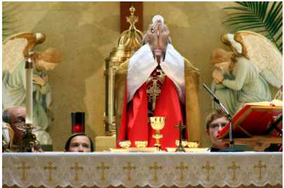 Atanasio Schneider en Detroit, en La Gruta de la Asunción, celebrando el rito bastardo ad orientem; por supuesto, bien celebrado, como lo celebran en una abadía, allá por Florencia.