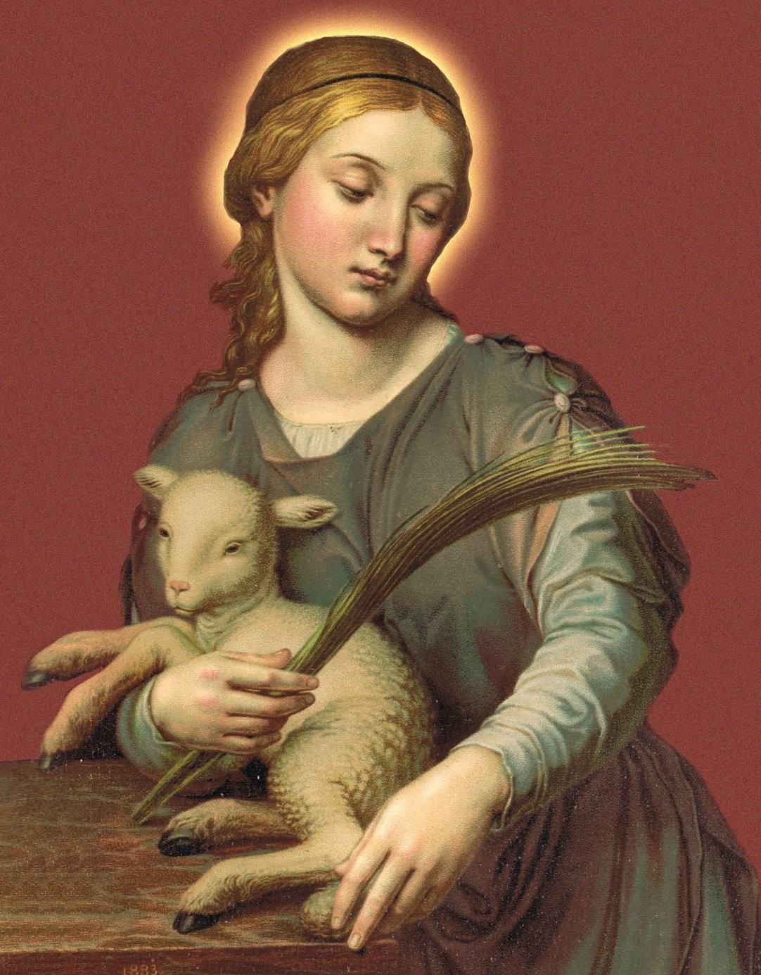 ¡Oh! virgen gloriosa Santa Inés, vos que viviendo bajo la tiranía de la Roma pagana supisteis mantener la pureza bautismal, preservando de este modo el tesoro de la fe cristiana; vos que a los 12 años tuvisteis el valor viril de soportar el martirio para no traicionar vuestro voto de virginidad, conseguidnos la virtud de la templanza para vencer los asaltos de las pasiones y las asechanzas del enemigo en medio de la descomposición del siglo.