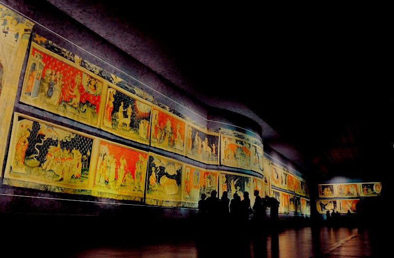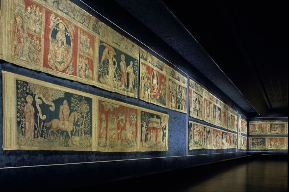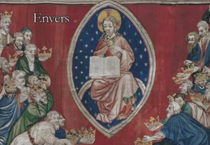 El Tapiz de Angers constituye el más importante conjunto de tapices medievales del mundo. Fue entregada por el Rey René a la catedral de Angers en el siglo XV. Cuando no estaba presentada en la nave de la catedral, se encontraba conservada en baúles, enrollada sobre sí misma.