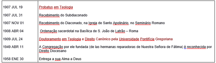 Y funda en 1926 una Congregación Religiosa dedicada íntegramente a la reparación, llamada Hermanas reparadoras de Nuestra Señora de Fátima.
