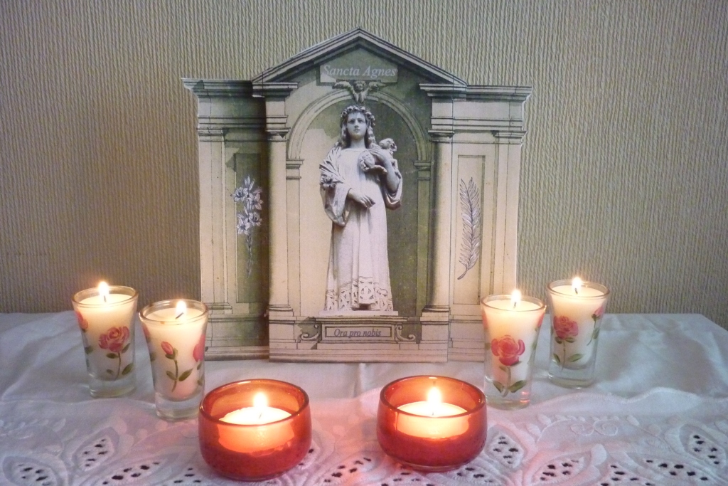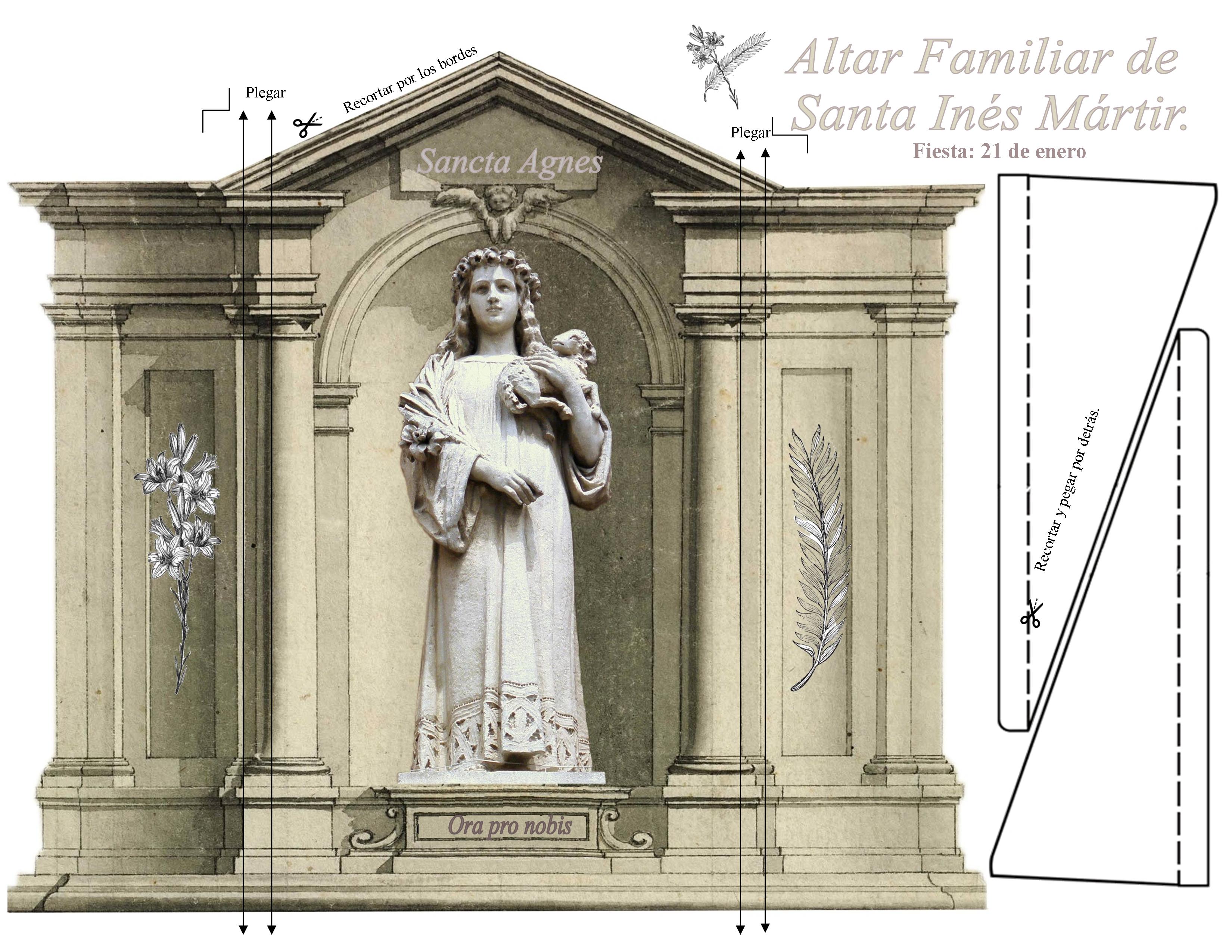 (Compartimos en los siguiente enlaces Altar de Santa Inés para armar en familia – Se imprime en tamaño carta para luego recortar y pegar)
