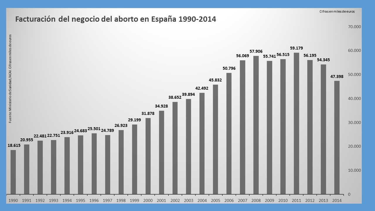 Y es que en España, se produce un aborto cada 4,8 minutos, que multiplicado por el precio de cada intervención durante los últimos 20 años, la cifra se acerca a los 1.000 millones de euros (967.633.000 euros). Un negocio realmente rentable.