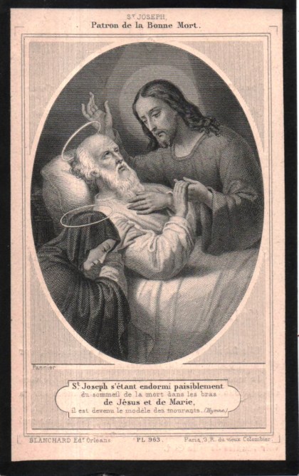 Según la tradición, san José durante los siete u ocho últimos años de su vida, fue visitado por la enfermedad y los sufrimientos: los largos y penosos viajes que había hecho, los padecimientos de corazón, los trabajos y las privaciones, habían alterado su constitución y arruinado completamente sus fuerzas. Aseguran que esto no fue para él sino un resto de vida tan lánguida, por lo que le fue preciso, según la decisión de Jesús y de María, entregarse al descanso. Observamos que la muerte de san José nada tuvo de sobrehumano. Y sin embargo, no fue una muerte ordinaria la de nuestro santo Patriarca; los males y las enfermedades intervinieron, no para producir la disolución de su vida, sino para concluir de embellecer su corona, y completar su eterna fortuna, Cuando llegó el tiempo de terminar su bella y santa vida, el mal debió alejarse y dejar obrar al amor. Tal es al menos la opinión de muchos autores distinguidos por su ciencia y virtudes, y tal es el sentir de san Francisco de Sales y san Alfonso María de Ligorio. Y ¿cómo hubiera podido morir José de otra manera, exhalando su último suspiro en los brazos de Jesús y de María? Había vivido de amor, y debió morir por amor. El corazón de José, era un foco ardiente de fuego, que no se consumía, y pudo llevarlo durante una larga vida, porque las llamas de este corazón se escapaban por sus servicios como por otras tantas aberturas pero cuando estas vías se cerraron en un corazón tan activo, su corazón debió derretirse como la cera. Así podemos afirmar con toda seguridad, que la muerte de san José fue como la de su santa esposa, una muerte de amor. Esto lo reveló la santísima Virgen a santa Brígida.