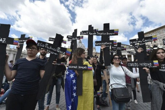 El domingo 7 de mayo de 2017, un grupo de venezolanos hizo una protesta silenciosa contra la inacción de Bergoglio con respecto a la grave crisis en su país. Los activistas realizaron cruces negras con los nombres y las edades de los injustamente asesinados por la policía.