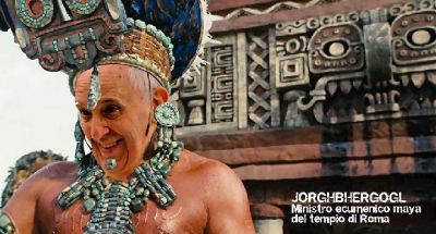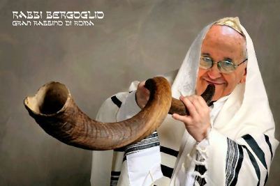Todos los desvaríos ecumenistas encarnados en un solo rostro. La tragedia estriba en que el blasfemo Bergoglio siempre se las arregla para ir más allá de la imaginación más audaz …