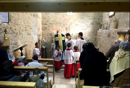 Misa celebrada por Peignot en la capilla de Burdeos, en noviembre de 2016, como verán, rodeados de niños.