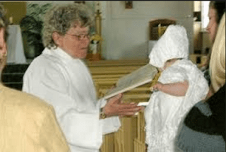 La apostata Pierrette Thiffault quien con el apoyo de Roma usurpa la función sacerdotal, la cual se disfraza con el alba sacerdotal recibió el apodo de ‘pastor’ por su obispo, Dorylas Moreau. Que trabajan en colaboración.