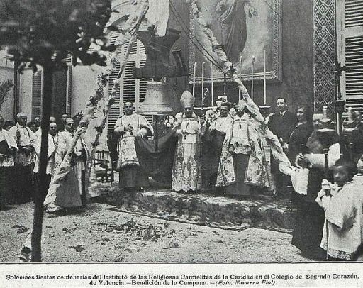 Era un acto solemne. Se reunían los fieles en torno a la campana, suspendida algunos metros encima del suelo. Cerca de ella estaban colocados el agua, la sal, los santos óleos, el incienso, la mirra, el turíbulo encendido. El obispo se presentaba con ornamentos pontificales, acompañado del clero y seguido del padrino y de la madrina de la campana, aquellos que en ocasiones verán sus nombres grabados en las campanas.