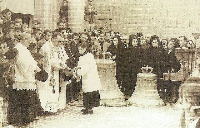 El bautismo o bendición de la campana es una ceremonia reservada al obispo, y solamente los sacerdotes tenían el derecho de tocarla.