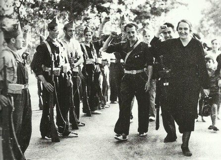 En 1917 quedó muy impresionada por el triunfo de la Revolución Bolchevique en Rusia. Adoptó el apodo de Pasionaria por publicar sus primeros artículos en la Semana Santa de 1919, la líder obrera que en el Madrid de la Guerra Civil exclamaba el «¡No pasarán!», y que como presidente del PCE –fiel a los dictados de la temida Unión Soviética de Stalin, donde vivió buena parte de su vida– se creó una fama temible durante la Guerra Civil por su crueldad con los sacerdotes y religiosos, y que en sus discursos durante la II República y la Guerra Civil enardecía a las masas para luchar violentamente en pro de la instauración de la dictadura del proletariado, y confesaba su ateísmo y su odio a la Iglesia.