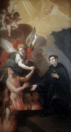 Que vivió en el siglo XIII, tuvo una experiencia mística que lo hizo patrono de las almas del Purgatorio. Un sábado en la noche, después de prolongada oración, estaba en su lecho, queriendo dormirse, cuando escuchó una voz lastimera que le decía: “Nicolás, Nicolás, mírame si todavía me reconoces. Yo soy tu hermano y compañero Fray Peregrino. Hace largo tiempo que sufro grandes penas en el Purgatorio. Por eso, te pido que ofrezcas mañana por mí la santa misa para verme por fin libre y volar a los cielos… Ven conmigo y mira”. El santo lo siguió y vio una llanura inmensa cubierta de innumerables almas, entre los torbellinos de purificadoras llamas, que le tendían sus manos, llamándolo por su nombre y le pedían ayuda.