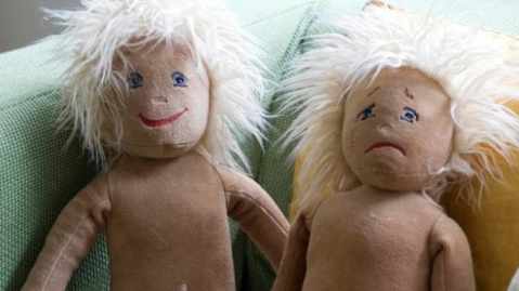Dos “muñecos emocionales” de género neutral en el jardín de infantes Egalia, Suecia (Gentileza: CNN)