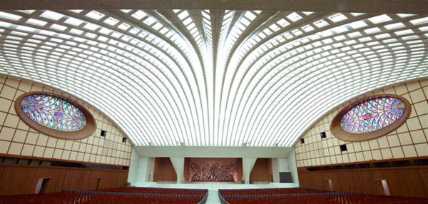 Pablo VI ordenó la construcción de una nueva estructura arquitectónica, la Sala de Audiencias Pablo VI o la Sala Nervi, en la foto de arriba , para albergar al público general papal. Encargado en 1963 e inaugurado en 1971, fue diseñado por el arquitecto italiano Pier Luigi Nervi.
