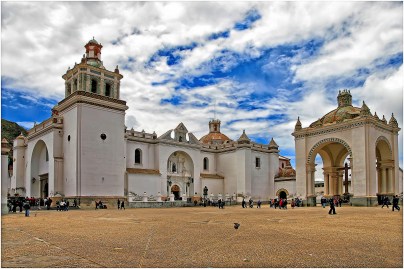 A orillas del Lago Titicaca, en las fronteras del Perú y Bolivia y recostado sobre una colina, se levanta, pues, el santuario de Copacabana.