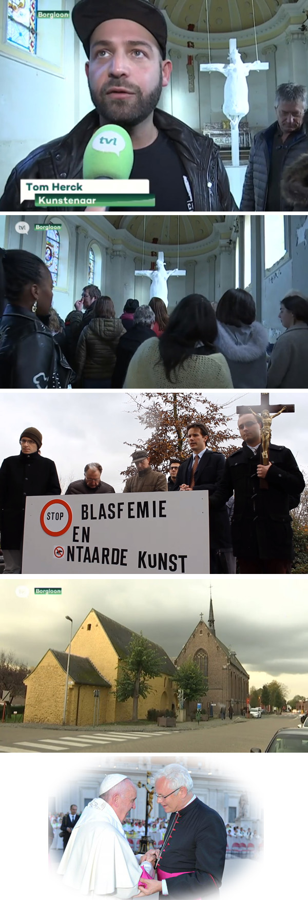 Mientras que Herck y otros «artistas» de este tipo pueden seguir produciendo arte demoníaco en las iglesias con el apoyo de las autoridades civiles, son solo parcialmente culpables de esta blasfemia. Los que soportan la mayor parte de la responsabilidad son los «Prelados» que permitieron que se llevaran a cabo tales blasfemias, particularmente el «Obispo» Patrick Hoogmartens, jefe de la Diócesis de Hasselt donde tuvo lugar esta profanación. Hasta ahora, Hoogmartens se ha negado a comentar, y tampoco ha tomado ninguna medida para eliminar la exhibición.