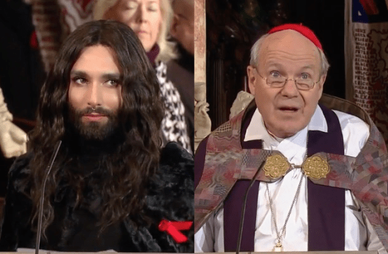 En las oraciones de licitación, el travestí Thomas Neuwirth, que se hace llamar «Conchita Wurst», lamentó una supuesta «persecución de aquellos que viven su identidad de una manera diferente a la de la mayoría». Después, invitó a la gente a subir, poner un grano de incienso en un tazón [!] y ofrecer una petición personal.