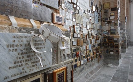 Las caminatas se realizan desde hace más de 400 años, cuando la Virgen fue trasladada desde Oyacachi a El Quinche, se le atribuyen una infinidad de milagros y favores que se retratan en algunos lienzos y placas que los devotos cuelgan en una pared de la iglesia.