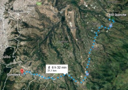 El pueblecito del Quinche se asienta en el noroeste de la ciudad de Quito en las faldas de la cordillera occidental, aproximadamente una hora de distancia de la capital del país, Quito.